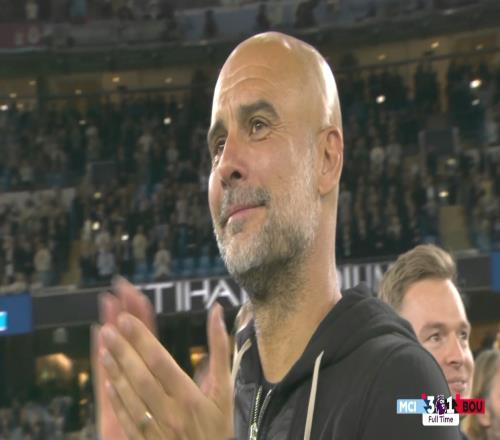 体育播报05月21日宣 曼城本轮3-1击败伯恩茅斯,赛后,曼城主场举行了德布劳内的告别仪式!告别仪式开始不久镜头给到瓜帅,瓜帅哭了!